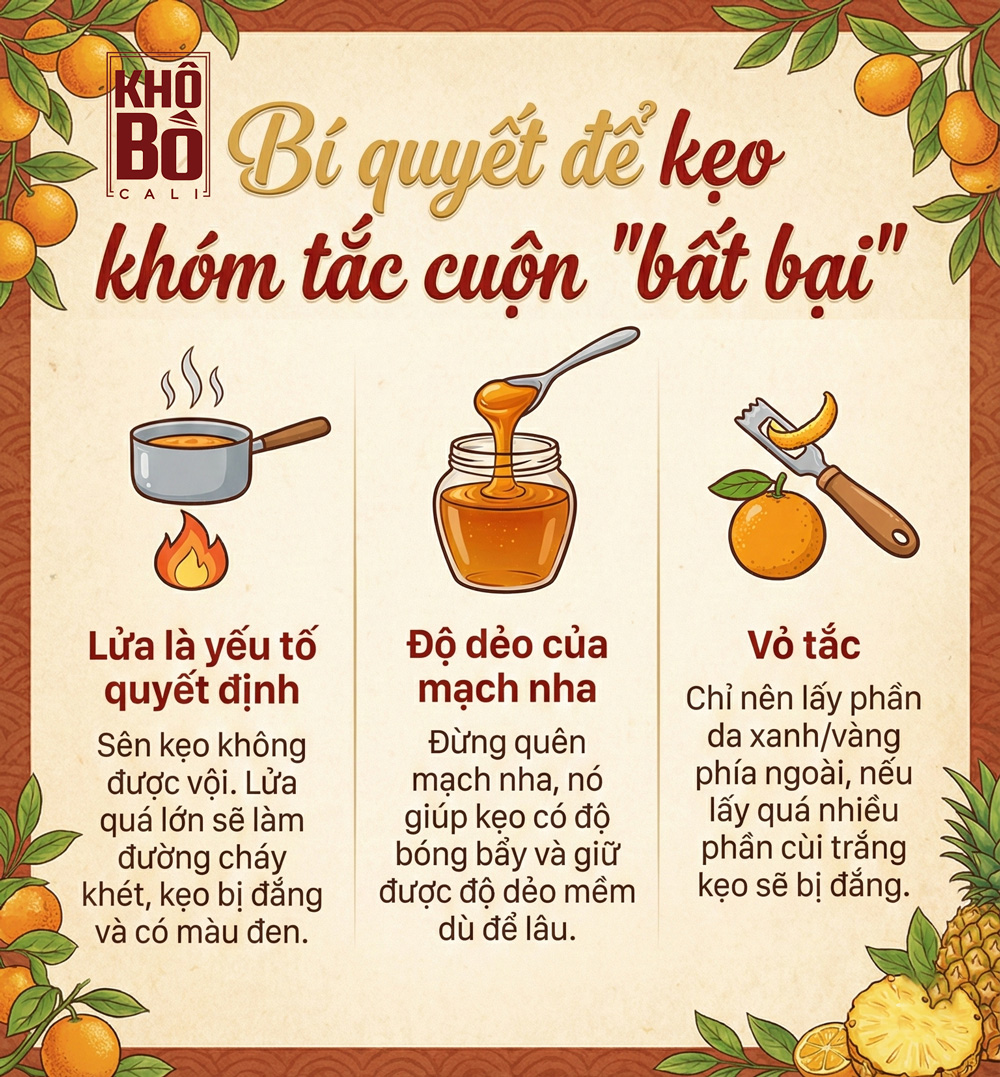 Làm kẹo khóm tắc cuộn không khó, cái khó là ở sự kiên nhẫn và tình yêu đặt vào từng mẻ sên. Hy vọng với hướng dẫn chi tiết trên, bạn sẽ tự tin trổ tài làm món kẹo này để chiêu đãi người thân trong dịp Tết sắp tới.
